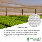 A empresa tem os modelos Freshnet 35%, Freshnet 50% e Freshnet 65%. O uso das telas Freshnet mantém as estufas e telados protegidos, melhorando a produtividade.