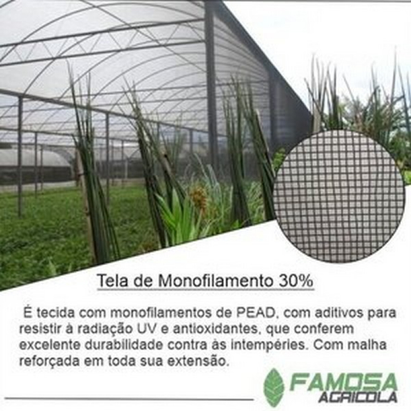 A Famosa Agrícola conta com uma ampla linha de telas de sombreamento para o controle solar em áreas com as mais variadas culturas agrícolas. Os produtos são de excelente qualidade e ajudam a melhorar a produtividade nas plantações. As telas têm fácil instalação, não desfiam, são confeccionadas em polietileno de alta densidade e recebem aditivos que protegem o material contra os efeitos nocivos dos raios UV.